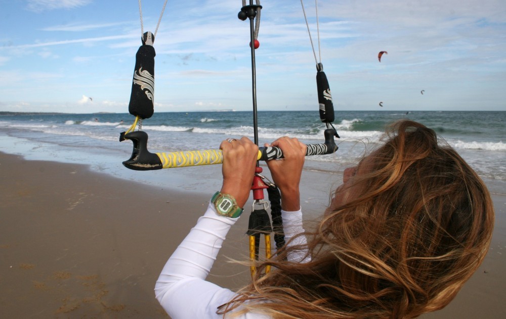 In Video 2 Karine pushes the bar away from her. The back lines are slack, the kite has de-powered and she feels very little pull. You can also see how when she tries to steer with the bar in this position nothing happens. If you find yourself in this situation just pull the bar in towards the sweet spot and you’ll regain the ability to steer.