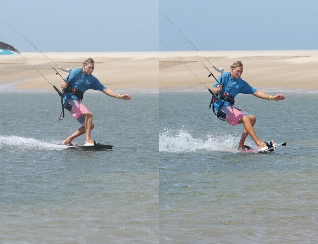 This is the transition phase, as you’re transitioning from your toe edge, across a flat board onto your heel edge. What makes this process challenging is that as you roll from one edge to the other, you must also adapt your body position from toe side stance to a dynamic carving position. Otherwise, you risk being pulled back and off balance by your kite.