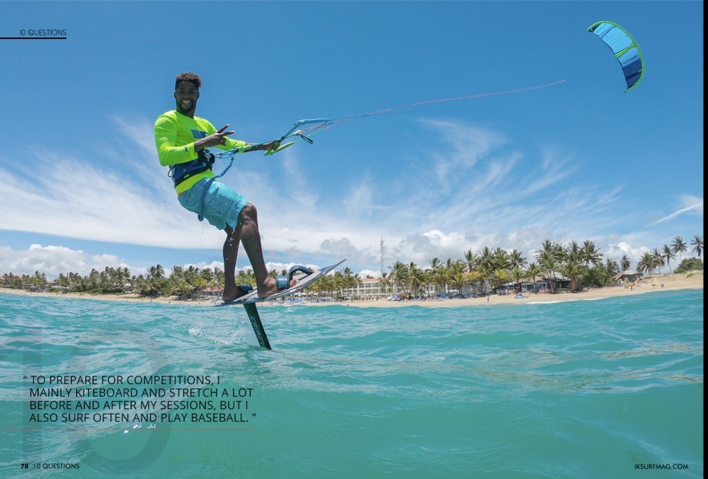 To prepare for competitions, I mainly kiteboard and stretch a lot before and after my sessions, but I also surf often and play baseball.
