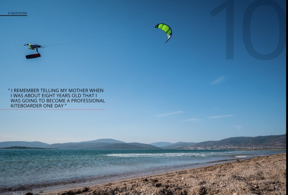 Growing up, we lived right across from where my brothers worked as instructors. I wasn't allowed to go to the beach with them initially as I was too young, and they thought it might be too dangerous! I remember telling my mother when I was about eight years old that I was going to become a professional kiteboarder one day, travel the world and compete, and take her for her financially, and here I am today.