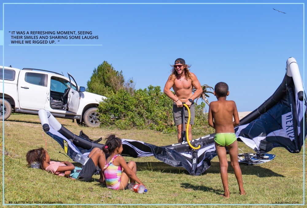 After the J-Bay Lagoon, we still had some energy left and headed to explore another spot, Gamtoos. The local kids were excited to see us arrive and raced to help us set up our gear. It was a refreshing moment, seeing their smiles and sharing some laughs while we rigged up. The scenery in Gamtoos was stunning and completely different from what we had seen so far.