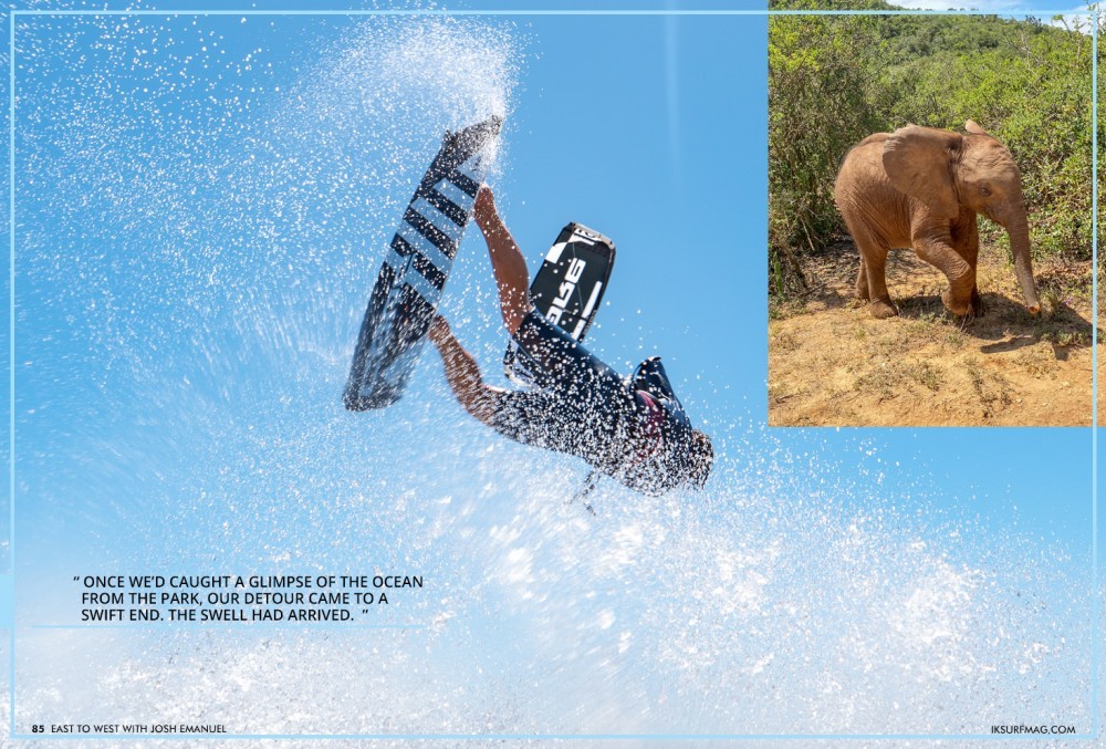 We had been in the car for nearly 11 hours, fuelled by the promise of perfect waves and wind. An hour away from our first destination, we stopped at Addo Elephant National Park, hoping for an up-close encounter with some of the more than 600 elephants that live in this protected area. As incredible as the elephant experience was, once we’d caught a glimpse of the ocean from the park, our detour came to a swift end. The swell had arrived.
