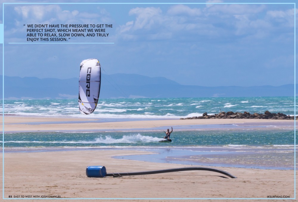 The next day, the wind switched to the northeast. It looked like we would get a flatwater freestyle session in at the St. Francis lagoon before the wind filled in. We messed around in the shallow pools for the next half hour, Josh shooting photos while I rode his 12m Core XR6. The session was short, but a welcome break from shooting.
