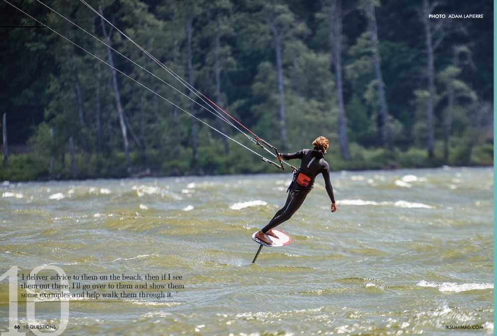 I spend a lot of time on the beach talking with people about everything kite related. I think that, because I’m young, people feel that it’s easier to talk to me. It's always a blast being out with the regulars who foil every day they can. I deliver advice to them on the beach, then if I see them out there, I’ll go over to them and show them some examples and help walk them through it. I am very comfortable on a foil, so I tend to get close to other people who, more often than not, get a little scared.