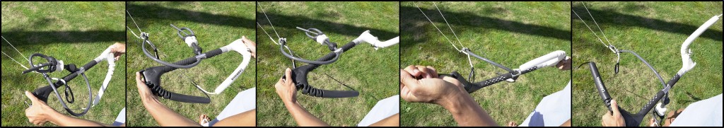 Now if your lines show that you need to pass the bar from underneath, as back in Pic 5 where the steering lines come over the centre lines from the outside towards the V. Then pass back under the centre lines back to the bar, the theory is the same, but you’ll be passing and then rolling the opposite way.