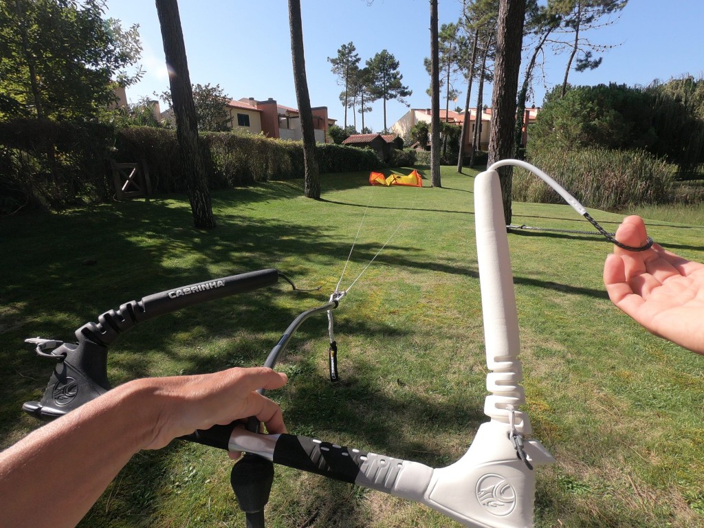 With the lines crossing nearer to you, you can see whether the kite has rolled within itself so that both lines are twisted the same way, or whether just one steering line passed over the kite. And you’ll see which way it rolled, or rather more importantly which way you’ll have to “pass” the bar back. To start simpler this issue, we’ll look at both lines twisted.