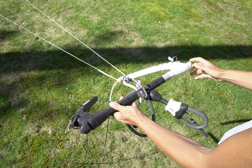 - To make sure that you don’t tangle the steering lines you can pull the bar ends out to each side, right and left.