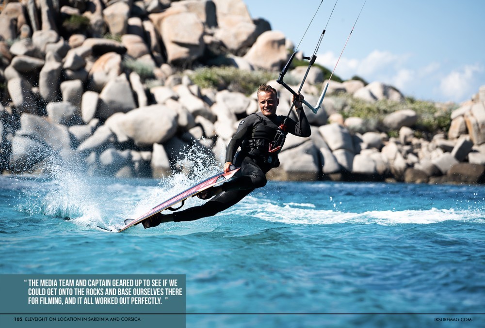 Five content creators sailed to Sardinia with Eleveight to capture the magic. Caroline Morris managed the production, with Kaimar Halliste and George Kintis as the pro riders, Cristiano Adorno shooting video content, and Kerli Halliste behind the camera. Thanks to Kite2Sail, they discovered a paradise kite cove in Corsica, making kitesurfing history on camera. Go behind the scenes with the Eleveight crew here!