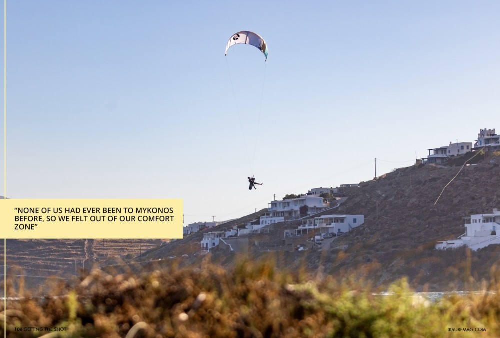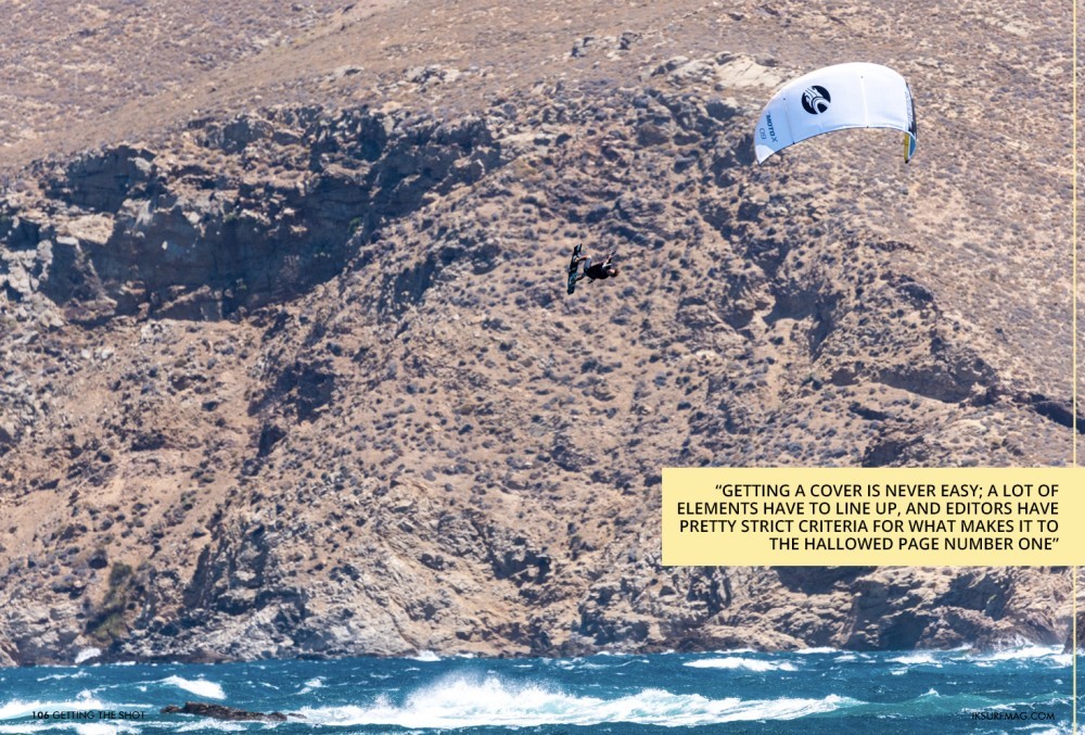 James Boulding - Getting a cover is never easy; a lot of elements have to line up, and editors have pretty strict criteria for what makes it to the hallowed page number one. With a recent trip to Mykonos, it was a bit of an unknown, having not been before, but with the pressures of a new product launch and wanting to shoot big air, which requires really strong wind, it looked like the best bet.