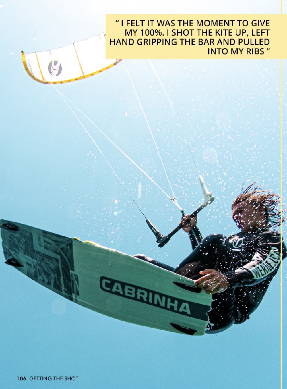 Stino worked hard to get the shot. It’s always a lot more work than you think, and there is a good amount of risk involved, too. For the cover shot, we found this incredible location with rocks in the foreground and a desert landscape behind, which was the perfect frame for the trick. All we needed now was a lucky gust and for Stino to be able to pull the move at the right time. Watching Stino soar on this new setup from minute one was really inspiring and the levels of fun and stoke he’d return to the beach with after each session was very motivating for everyone involved.