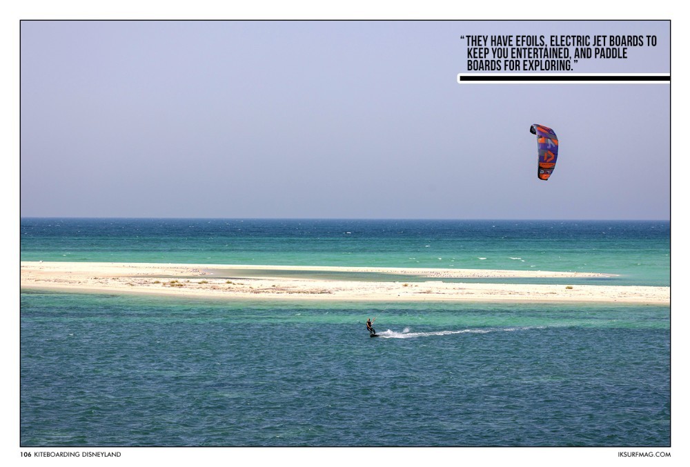 While the hotel is purpose-built, the spot itself is entirely natural, and it’s something of a phenomenon. Right out the front, a large lagoon stretches as far as the eye can see. White sand adorns the beach, and the sky is an azure blue to match the turquoise water. The lagoon is littered with sandbars and small islands, creating incredible flat water spots. The wind blows warm, steady, and surprisingly strong for the Middle East.