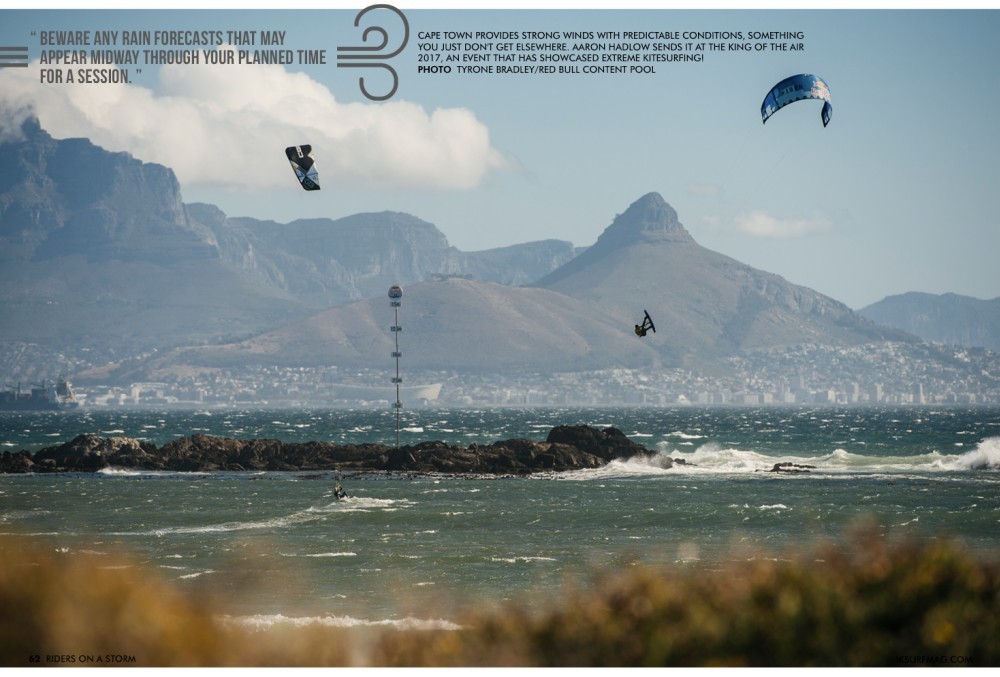 A frontal wind is usually accompanied by stormy weather; we’ll get to those later, but first, let's explain trade and thermal winds a little more. This will help you understand why riders can jump 28m in Cape Town relatively safe in the knowledge of how the wind is going to behave while they are up there…