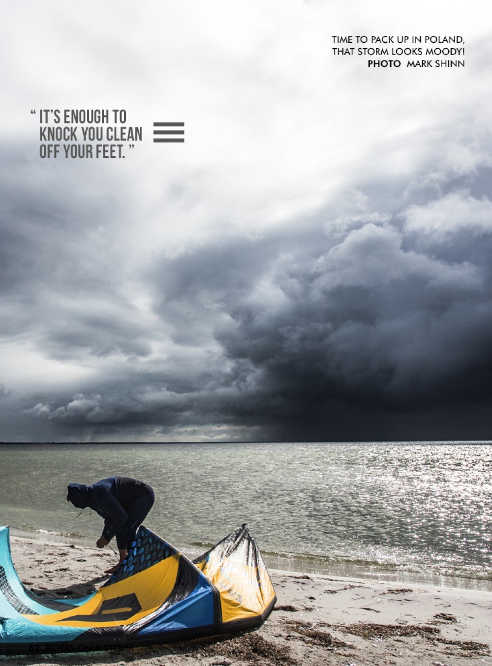 Riding storm systems and frontal winds is a risky business, make no mistake about it. You need to educate and prepare yourself as much as possible to reduce that risk, you can’t control the wind, but you can improve your knowledge of how it works. You can control the state of your equipment, and you can control your choices over kite size and where you kite. There are many elements within kitesurfing that are totally within your control; you just have to be willing to seize them.