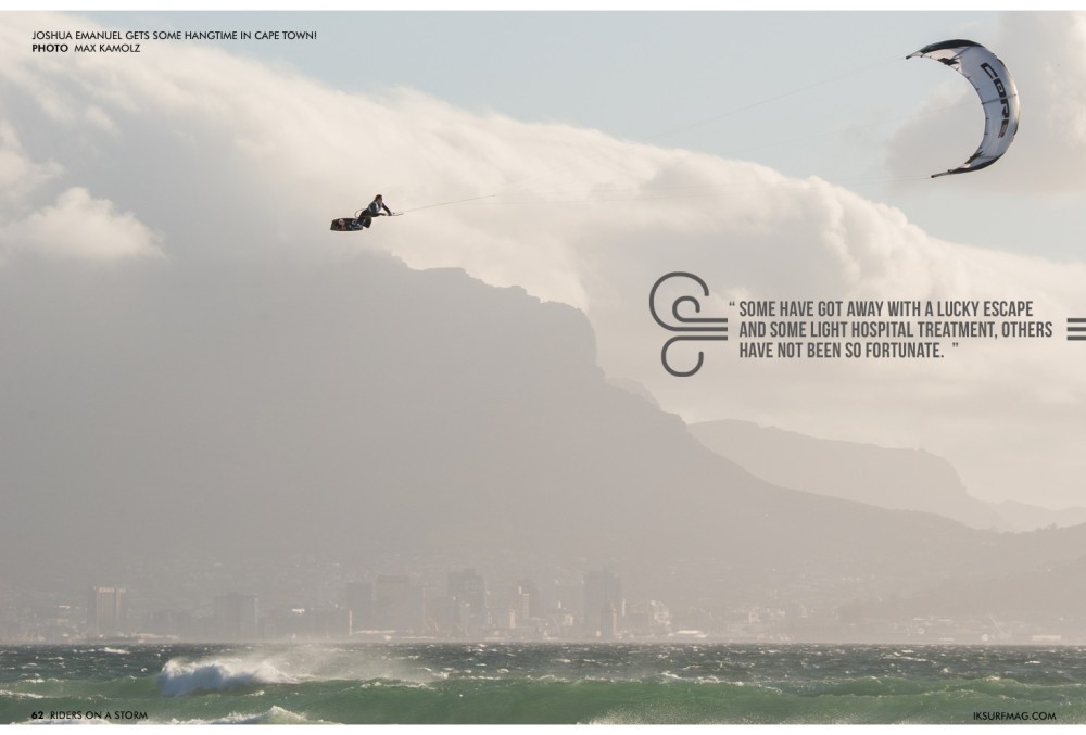Joshua Emanuel: When I kite in high winds the thing that gets me most pumped is knowing I will be able to boost huge and throw some loops. This gives me the best adrenalin rush in the world; there is nothing that can give me the same feeling as megaloop does. Strong winds get even better when there are some decent size kickers for me to hit.