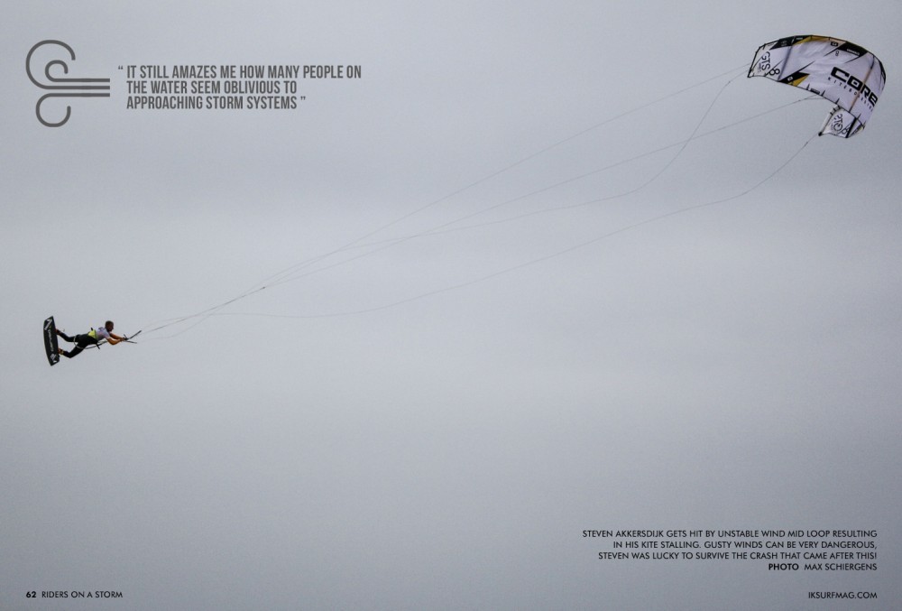 Steven Akkersdijk: When you go out in these conditions you should always look behind you for the cloud formations. When you see dark clouds coming take extra caution and if you get overpowered head back to the beach and land your kite. Also, make sure you always keep enough space downwind and ride with friends. Not to scare anyone off, but they might need to rescue you from the water one day…