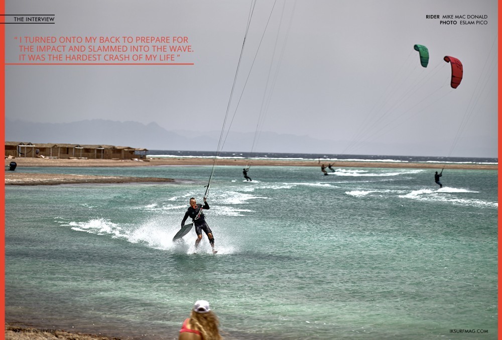 Haha, I didn't realise that was well-known! So I was riding a prototype kite, and we were filming the session. My mind was in the wrong place (thinking about prototypes, haha), and I wasn't in the moment. I hit a kicker, planning to do a boogie, a trick I've done a thousand times, but I didn't bring the kite up to 12 during my take-off. Instead, I left it around 10 or 11 o'clock. The next thing I knew, I was getting pulled super-fast into an oncoming wave. I turned onto my back to prepare for the impact and slammed into the wave. It was the hardest crash of my life, and I was on fire with pain. I was still conscious and body-dragged to the beach, coughing up blood. My wife and cameraman rushed me to hospital, where they discovered I had a lung contusion and a minor compression fracture to my T-3 vertebra.