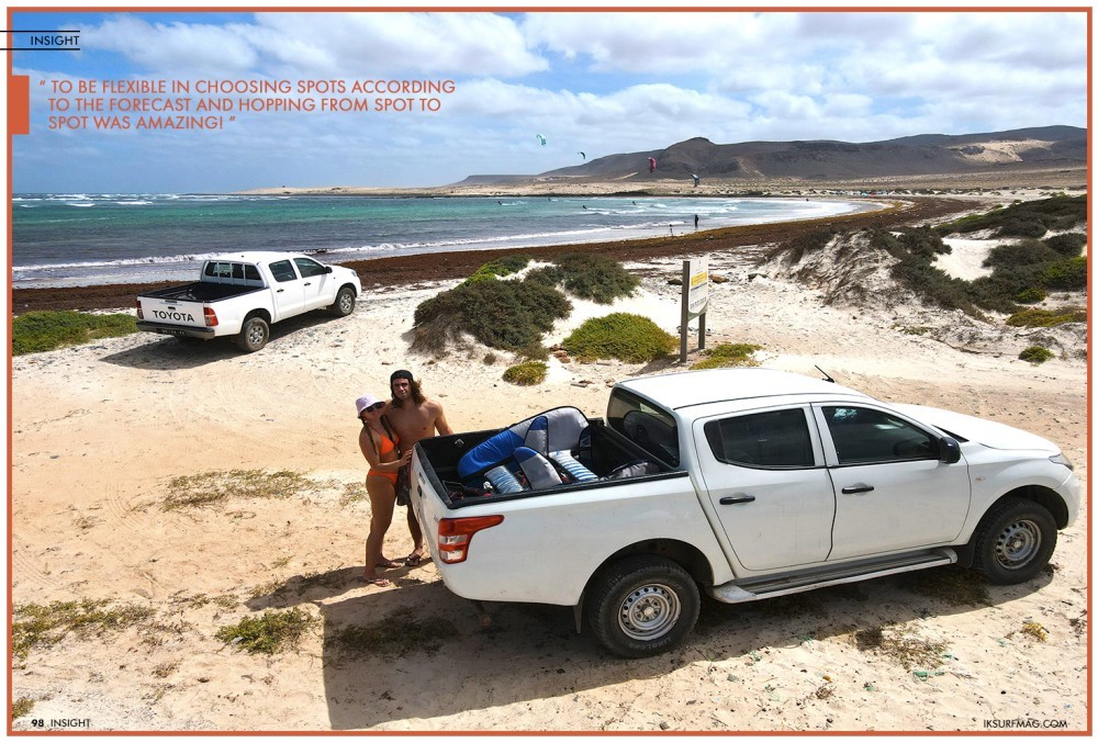 We had an incredible time with the rented 4x4. Driving around the island with it on dirt roads and through sand, turning the radio volume up and listening to good music while preparing for the next freestyle session were highlights of our trip! To be flexible in choosing spots according to the forecast and hopping from spot to spot was amazing!