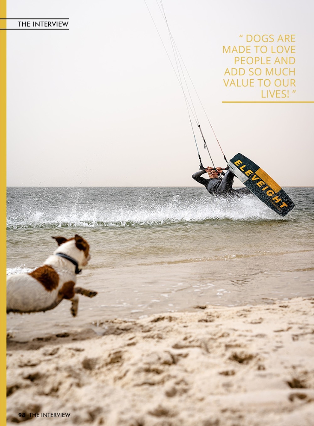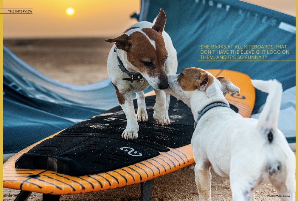 Donna has been with us on every trip since the beginning, and this is our 7th year. At the end of 2022, Donna had four puppies, one of which we kept in our family. Now we travel as a team of four - my wife Kerli and I and dogs Donna (7 years) and Panda (8 months old). Donna really respects one particular kite brand, and it's not a joke - she barks at all kiteboards that don't have the Eleveight logo on them, and it's so funny!!