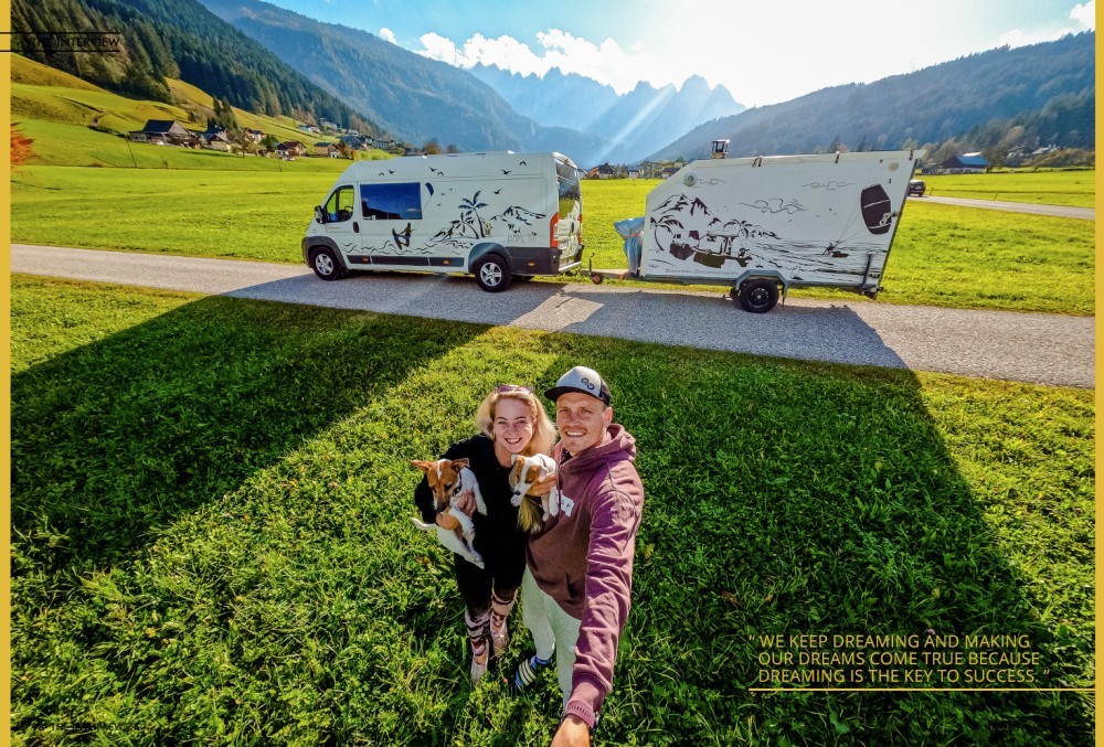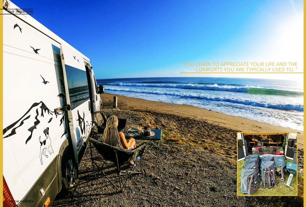 My wife Kerli and I are from Estonia. We were the first to start such a lifestyle among surfers in Estonia, and we started our van life very modestly, in a caravan that hooked onto a regular car and cost only €1,500. We started small to understand if such a lifestyle would suit us. Three years and eight different caravans later, we finally understood which layout worked best and realised we would be more comfortable in a van instead!