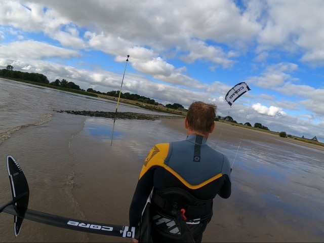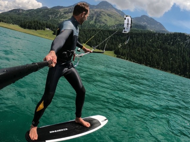 3. Selfie Stick: If you want to get an even more perfect shot, try using an extendable selfie stick while riding. I put it inside my wetsuit, and if I want to take a shot or video, I extend the pole and try to get the kite, myself and the board into the frame, which always looks nice. Again, you should shoot vertically to get more the action into your picture. A great feature of the 360 cams for taking videos is that they stabilise the horizon automatically.