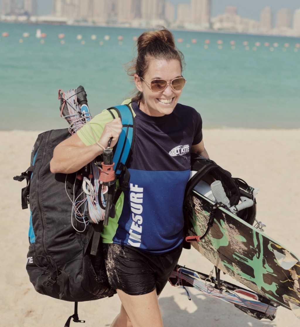 Kitesurfers are a brilliant bunch of people. Learning this sport takes passion, drive, and commitment – even a beginner kitesurfer has achieved something truly impressive! Imagine taking what is a hobby for most and taking it to the next level. That’s what Sarah Lord has accomplished. She is not only a talented kitesurfer and instructor but one of the foremost faces in the development of kitesurfing in Qatar.