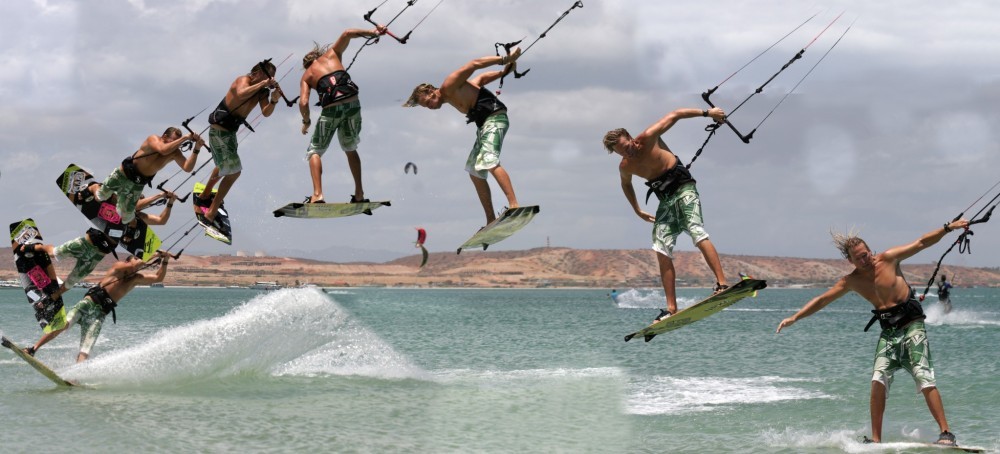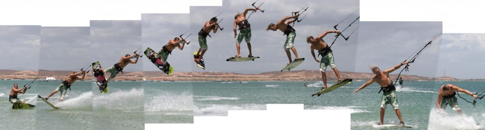 - Pic 1. With the kite around 1 o’clock and good speed Christian has gone off the wind, unhooked and is now carving hard upwind, full kite face, and very straight front leg.