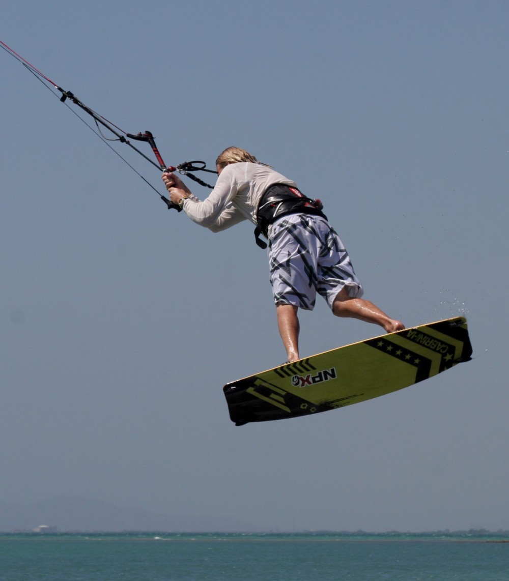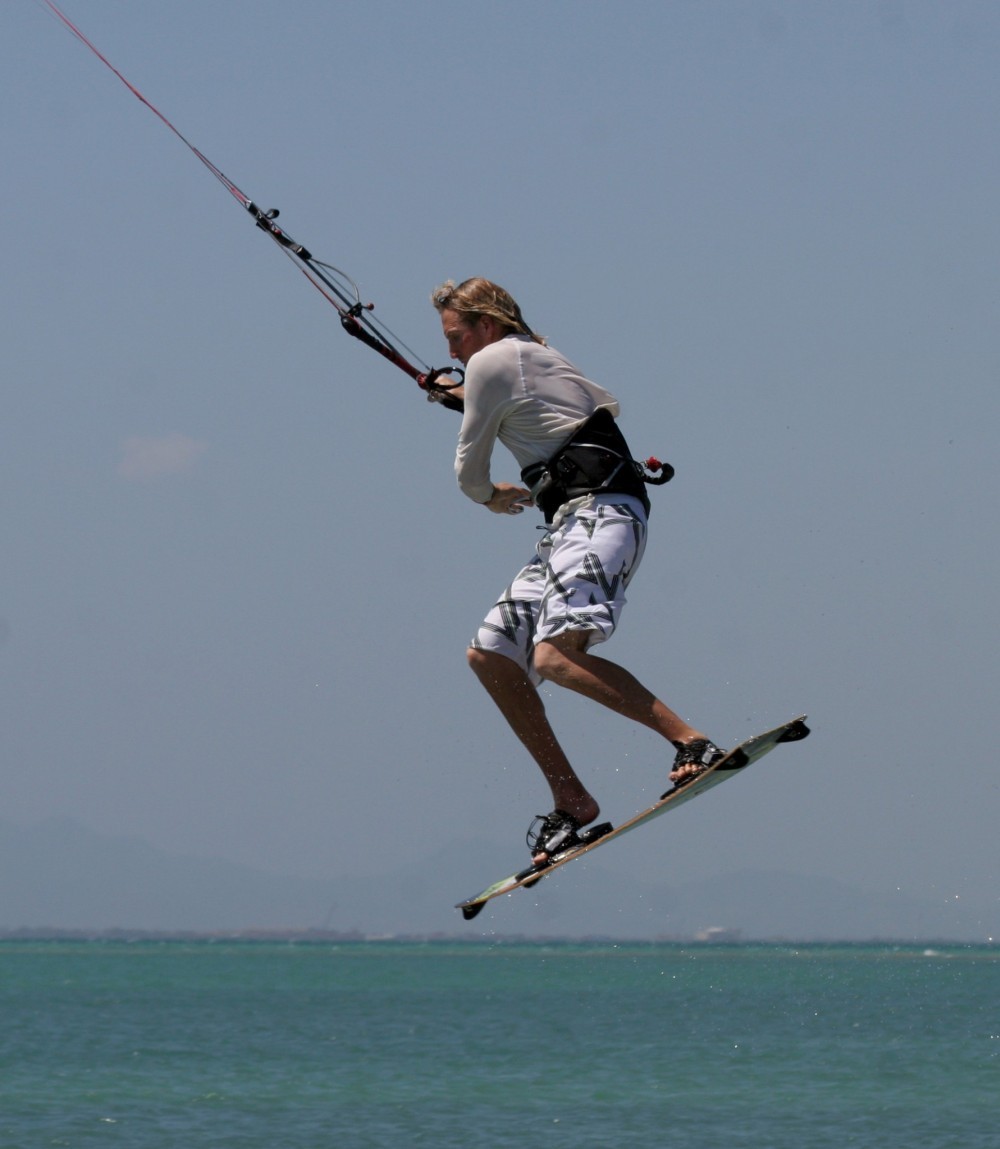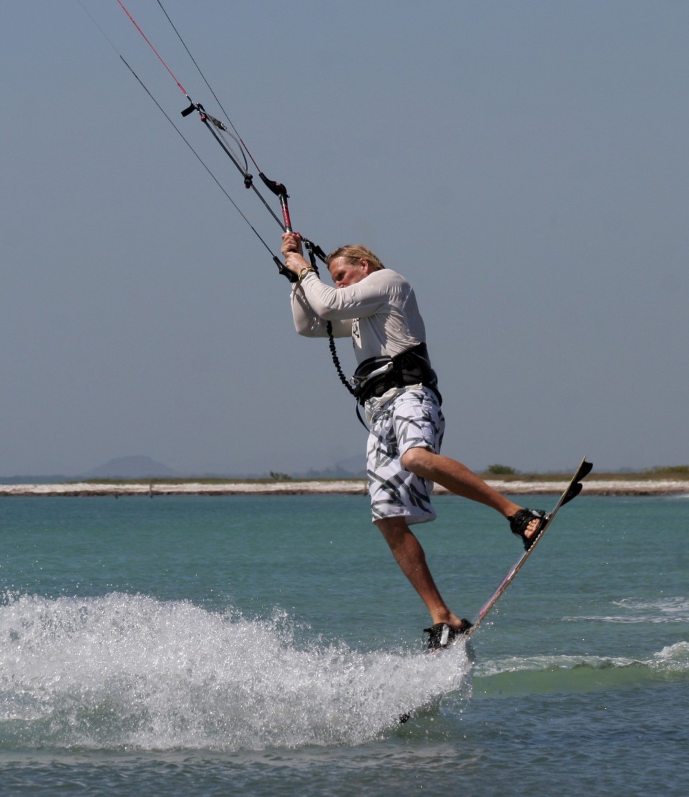 - Pic 5. And explodes up off his back leg before the kite starts to pull. As he pops up Christian keeps his arms bent and the bar in close.