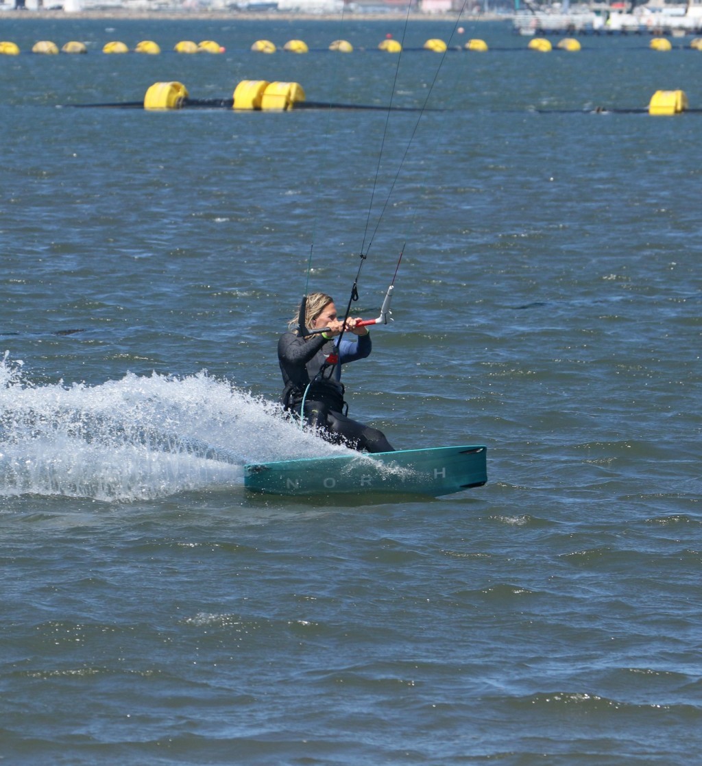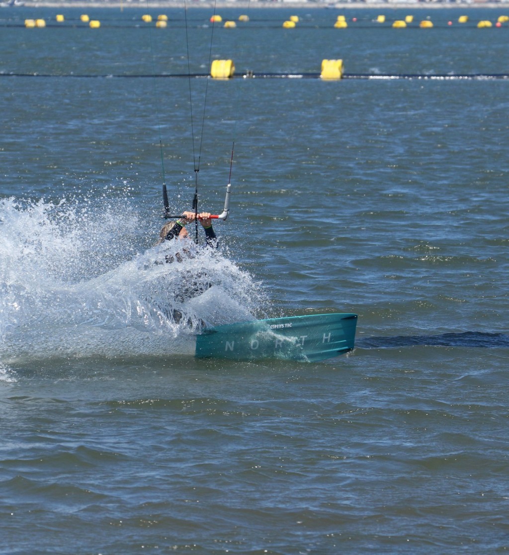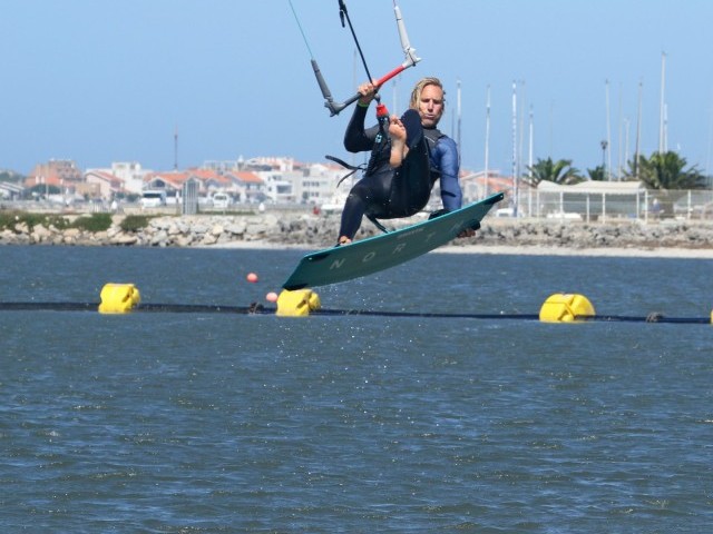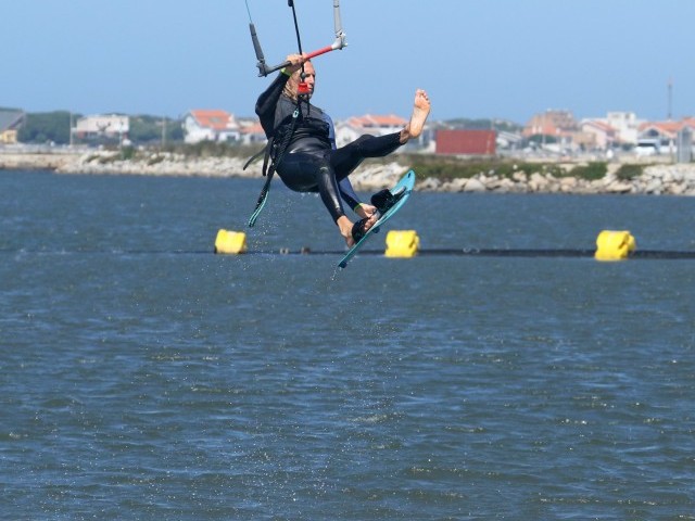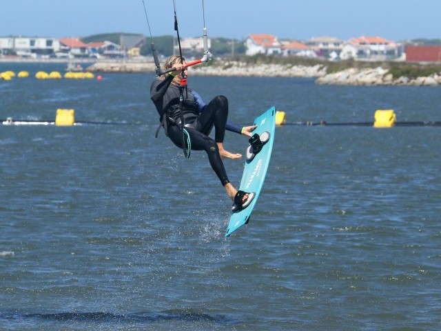 Building up to this is key. Start with some floaty air gybes, then add a grab, a cheeky one foot, a can, and finally the full Monty. Your effort should be concentrated on kite position, as if the kite is right, you’ll have time and confidence to nail this. It certainly helps if you can learn on a slower, lifty kite. Two factors that’ll make the most difference are levelling or even slightly redirecting the kite before take-off and that early stamp. As soon as the kite drifts too far, you’ll be playing a hopeless game of catch up.
