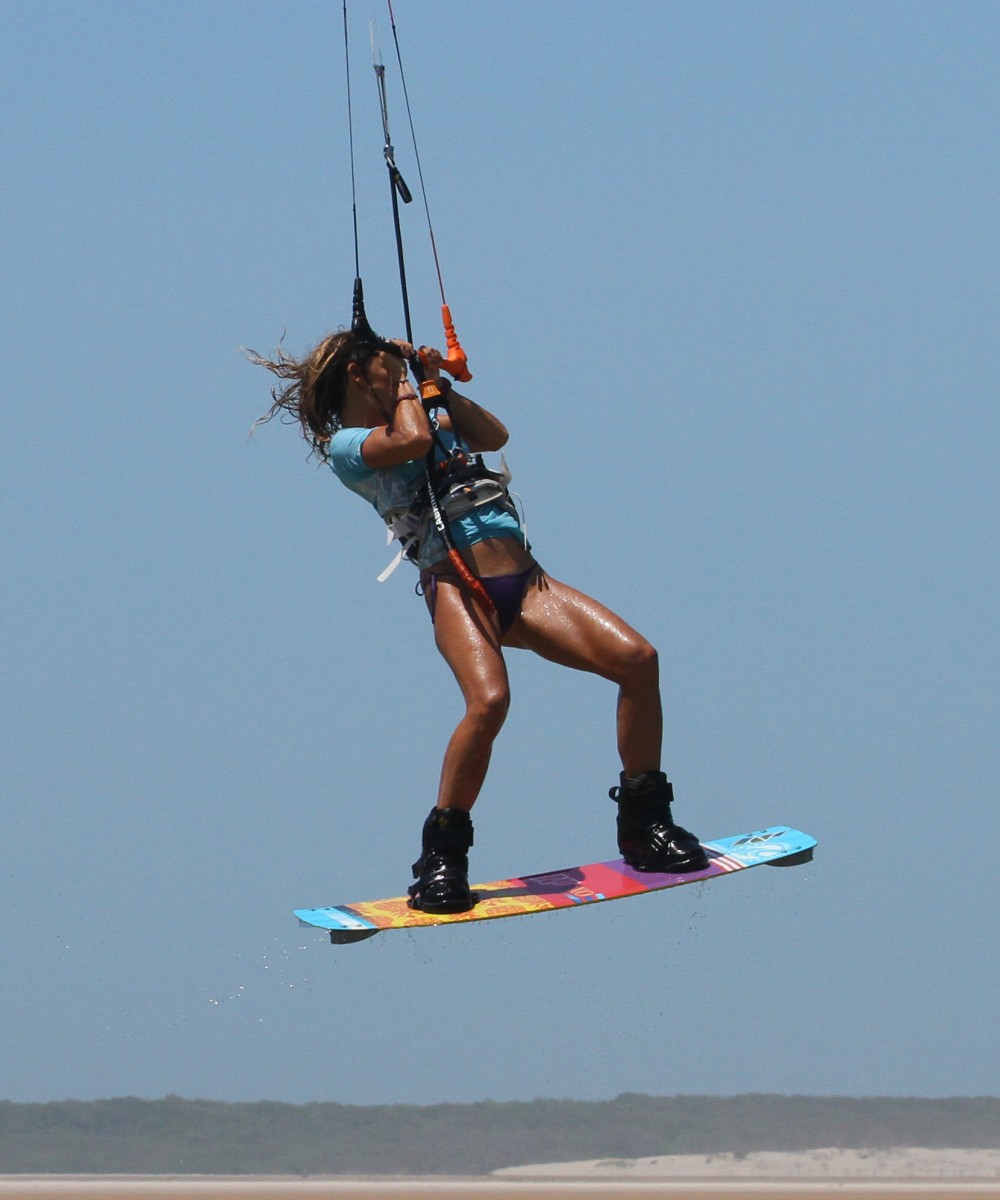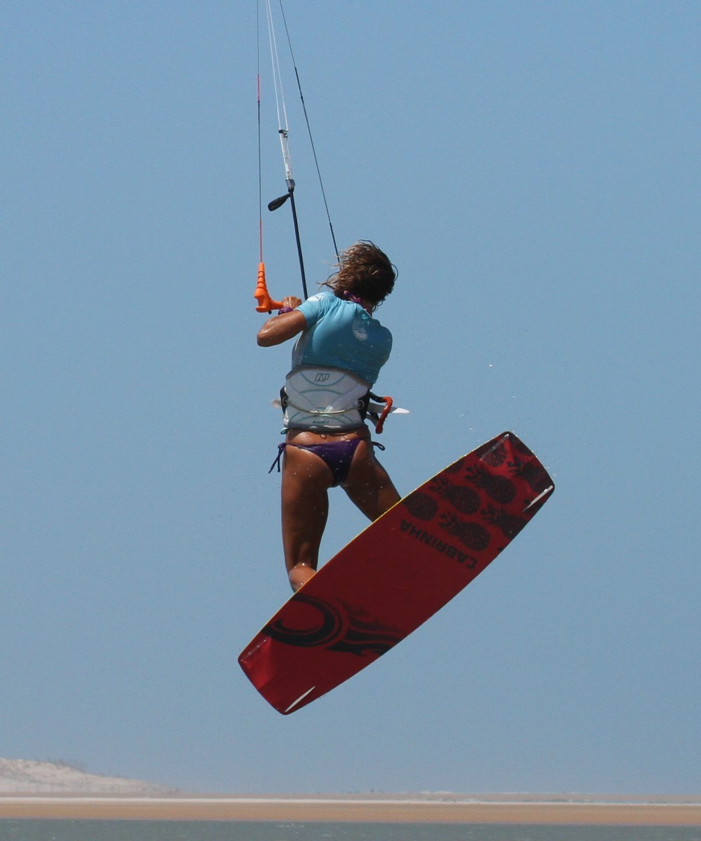 You can see that Karine has a strong edge and has carved hard upwind on take off to generate the rotation, whilst her head keeps looking forwards through her shoulders.