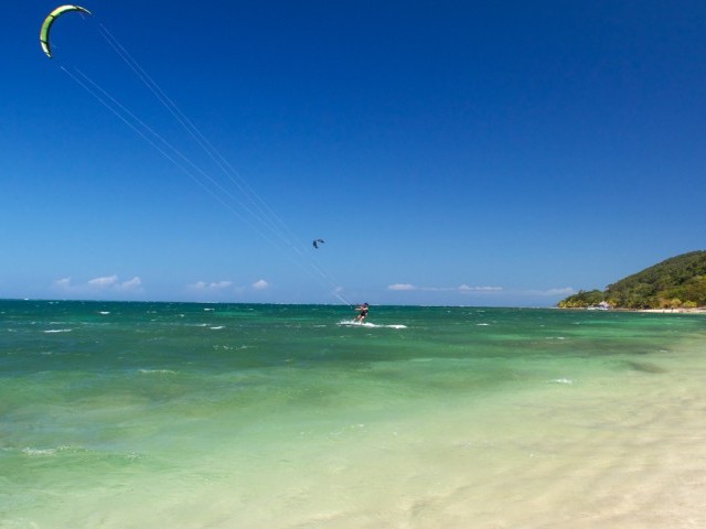 The wind blows steadily from the end of December until August. However, the Caribbean trade winds are the most consistent and reliable period, is from March until August. Occasional weather fronts mix up January and February. The wind speed is mostly between 12-25 knots and occasionally over 30. The water and overall temperature are pleasant all year round, and clear skies are the norm. It often rains during the night or in the early mornings, and if it rains during the day, it only lasts a few minutes. Avoid October and November as those are considered the rainy season and not suitable for kiting.