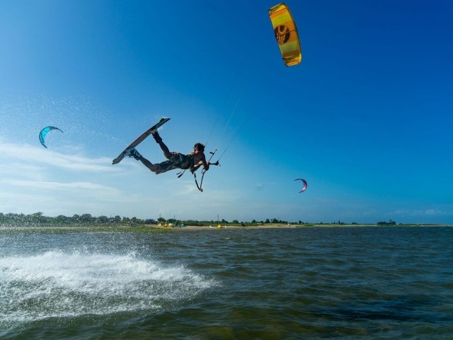 There are miles of the ocean you can ride! Most people launch and ride at the White Sands Hotel. This spot also offers great downwinders depending which direction the wind is blowing to many public beaches. The ocean can have a decent shore break but the waves are typically fun and stack up well.