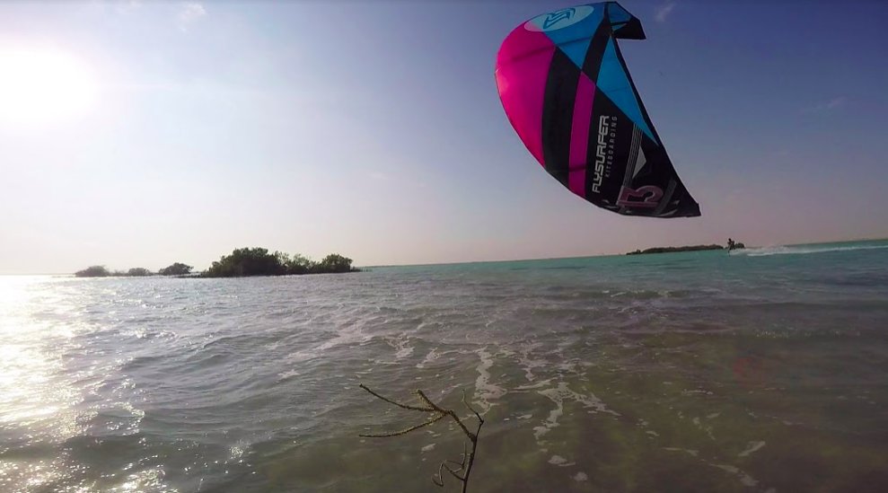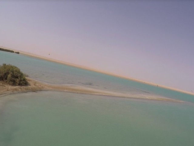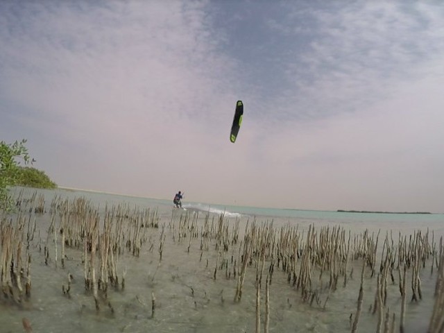 Shoiaba is a lagoon oasis in the desert, a wonderful place to kitesurf. It’s 1 kilometre wide and 2.5 kilometres long with a small sea river filling the lagoon from the North West. Open to the public, with literally no hazards such as rocks or coral you can expect only mangrove trees to be the only obstruction on the beach and your car. Just be careful not to drive your car onto the sand at low tide as it’s very soft sand. It’s one of the safest places to ride, being a lagoon it can be used in all wind directions. Riding on the North East side of the lagoon is the best place as its all sand and also has a nice sandbar which creates a shallow section of super flat water. Some other corners of the lagoon can have a little rock sediment. But the whole lagoon is pretty much sand all over. Shoaiba is located 40min South of Jeddah city
