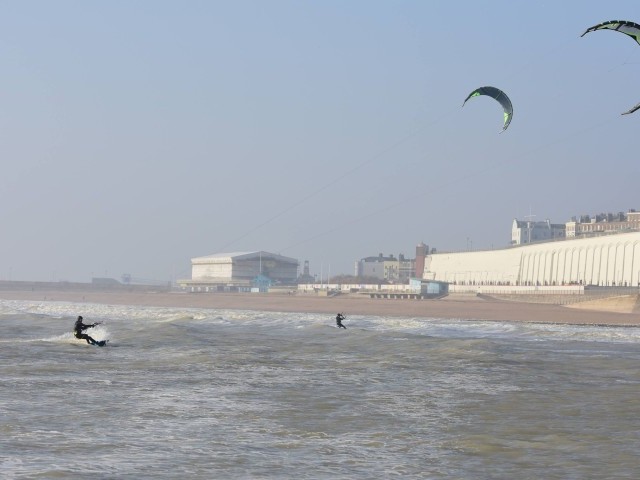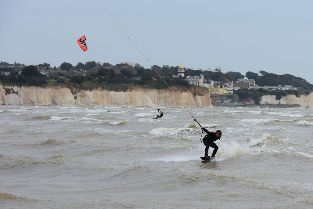 Ramsgate central sands are slightly less forgiving. The flat water of Pegwell is replaced by larger waves and steep shelving but working from S to N through E; it can deliver some excellent sessions. It is currently the spot which holds Lewis Crathern UK Big Air record and is also on the BKSA British Free Style tour set for this August.