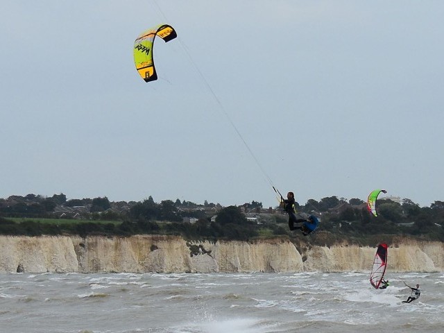 Pegwell Bay is a popular trendy spot due to its working best in the prevailing SW winds. It ebbs and flows massively, so low tide can be a bit of a walk, but well worth it! The water is shallow with very little chop, and a few sandbanks can offer lovely flat water spots. You need to be mindful of the local seal's colony, who often swim out of the river Stour estuary to feed and say hello. It works from SW to NE but can get gusty at times.