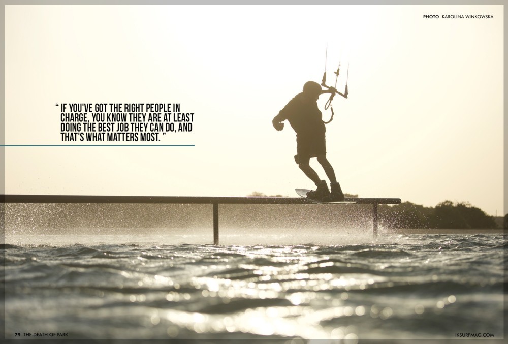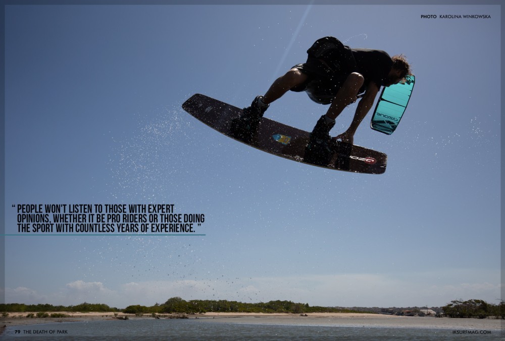 Park will take its own direction as it always has. Personally, I believe that park has never been defined by the competitions. Kiteboarding is a boardsport, and your respect and image are defined by what you do behind a kite. It's hard to believe these days I know!