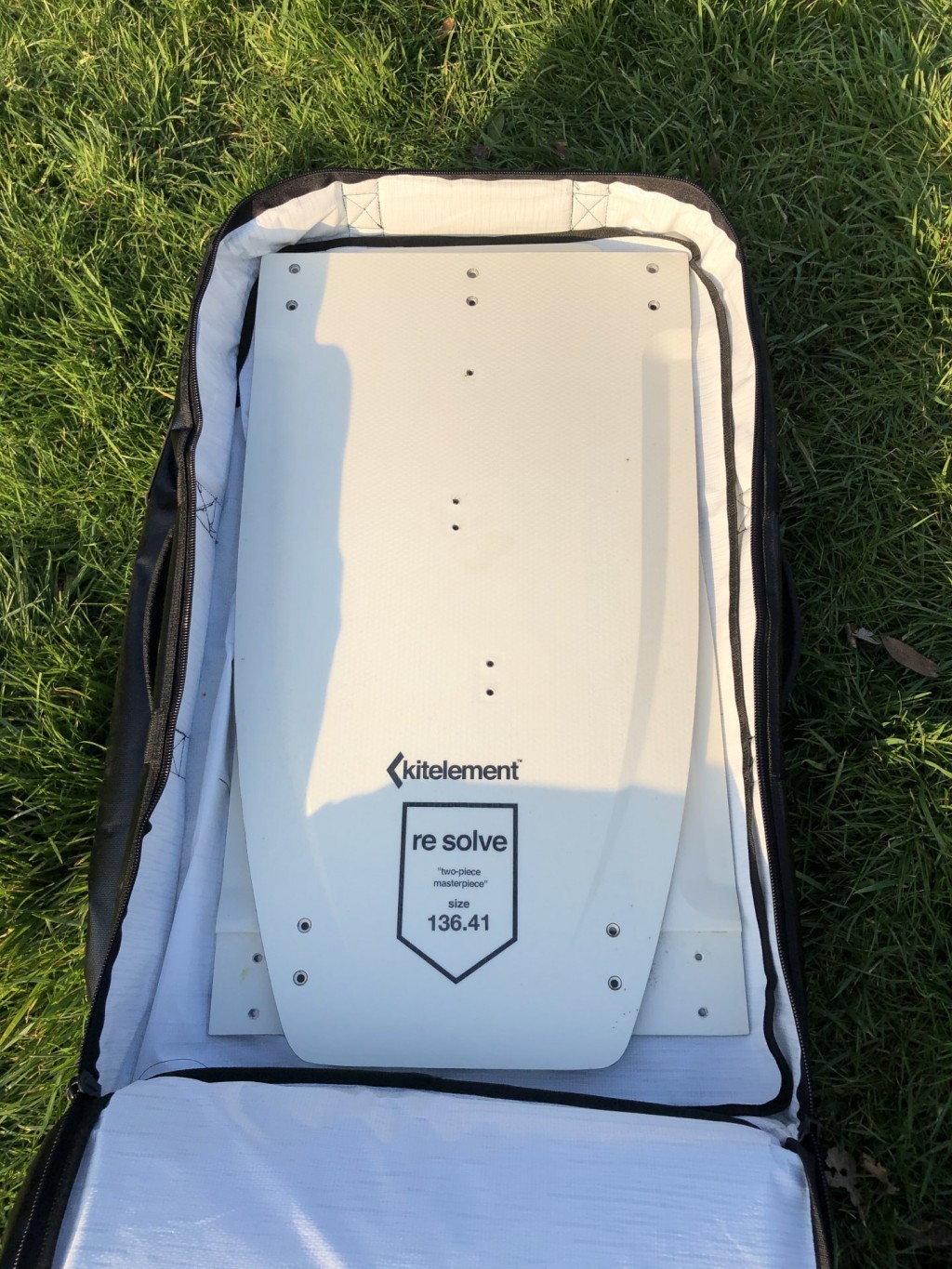 Appreciating that space is a premium when it comes to travelling with gear, the bag can easily accommodate two kites (vacuum packed), two bars, a pump, harness, a wetsuit (should you not be quite fortunate enough to be heading to tropical temperatures), footstrap style bindings and a splitboard. Kitelement state they’ve designed the ‘re pack’ to be able to accommodate their largest light wind split kiteboard, which is 150 x 45cm. So that gives you an idea of what you’d be able to cram in for a kitesurfing getaway, avoiding extra oversized baggage and sports equipment charges.