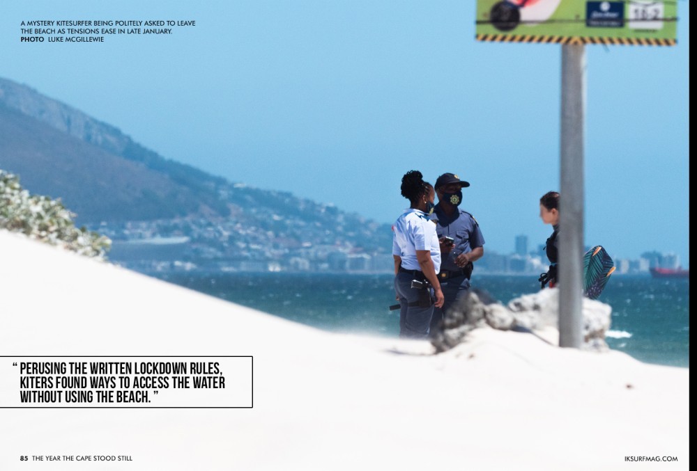 As lockdown restrictions eased further on June 1st, surfers and kiters made their way once again to the beach, relieved. Yet again, they were blocked from the water. Some surfers were arrested by authorities, while others stood their ground and paddled out. The tensions between kiters, surfers, and the police continued to simmer until late June when things just sort of… dissipated. Unofficially, surfing was back on the map!