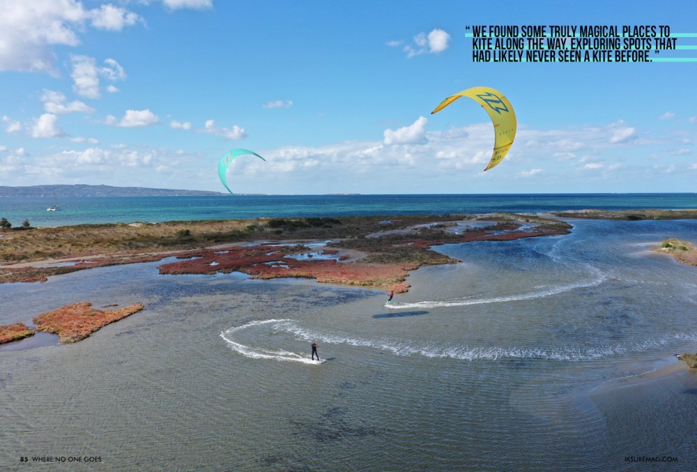 We found some truly magical places to kite along the way, exploring spots that had likely never seen a kite before. With so much unique terrain only accessible by boat, it was an endless series of discoveries. I'll never forget the flatwater session we had, tucking into a bay with alluringly blue water, and launching from the boat to explore a huge lagoon filled with flamingos. It was the ultimate feeling of freedom.