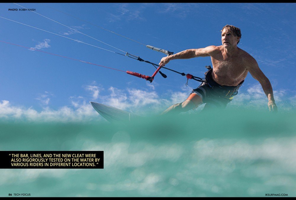 Brian: The process began with a list of the things that riders have been asking for, from beginners to pros. Robby, Alex, and I then began to brainstorm — studying examples from our past, from other brands, and from other industries. We agreed that our quick release ought to be as simple and safe as a standard quick-disconnect used on air hose fittings. So we cut one of those in half to study its construction and then we adapted the design for kiting. This assembly went through several iterations and many months of testing on the water and in the lab. The bar, lines, and the new cleat were also rigorously tested on the water by various riders in different locations. The exhaustive testing has been the key to identifying all potential design issues, ensuring we have a safe and robust design.