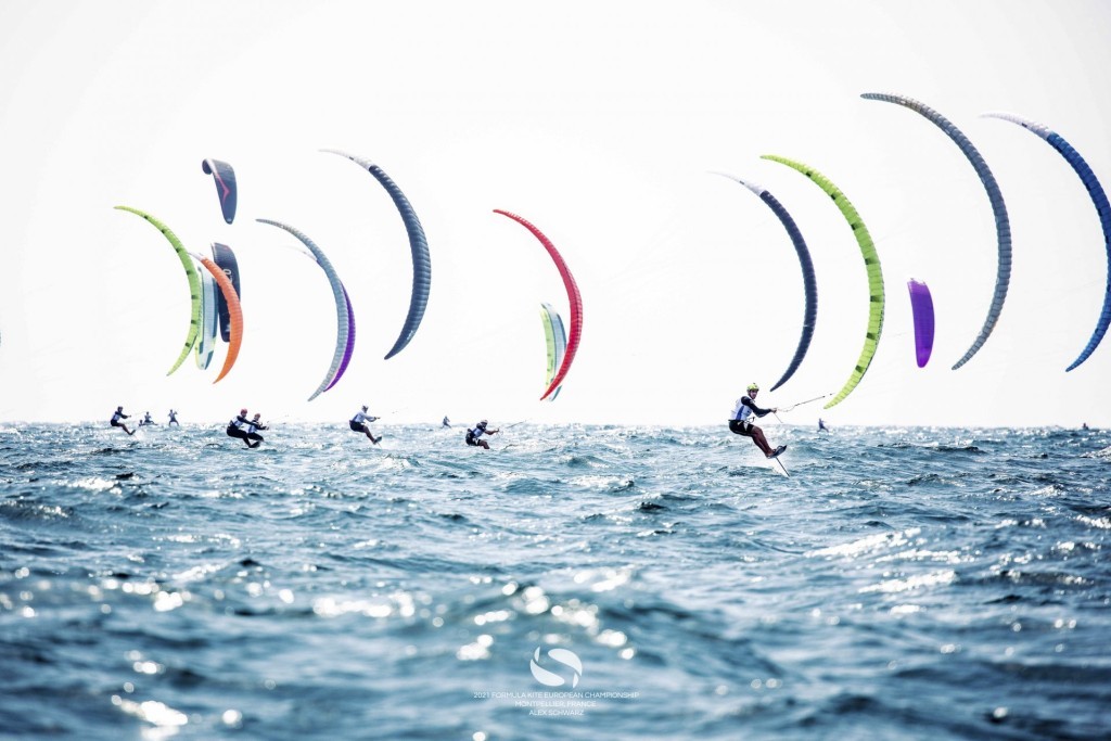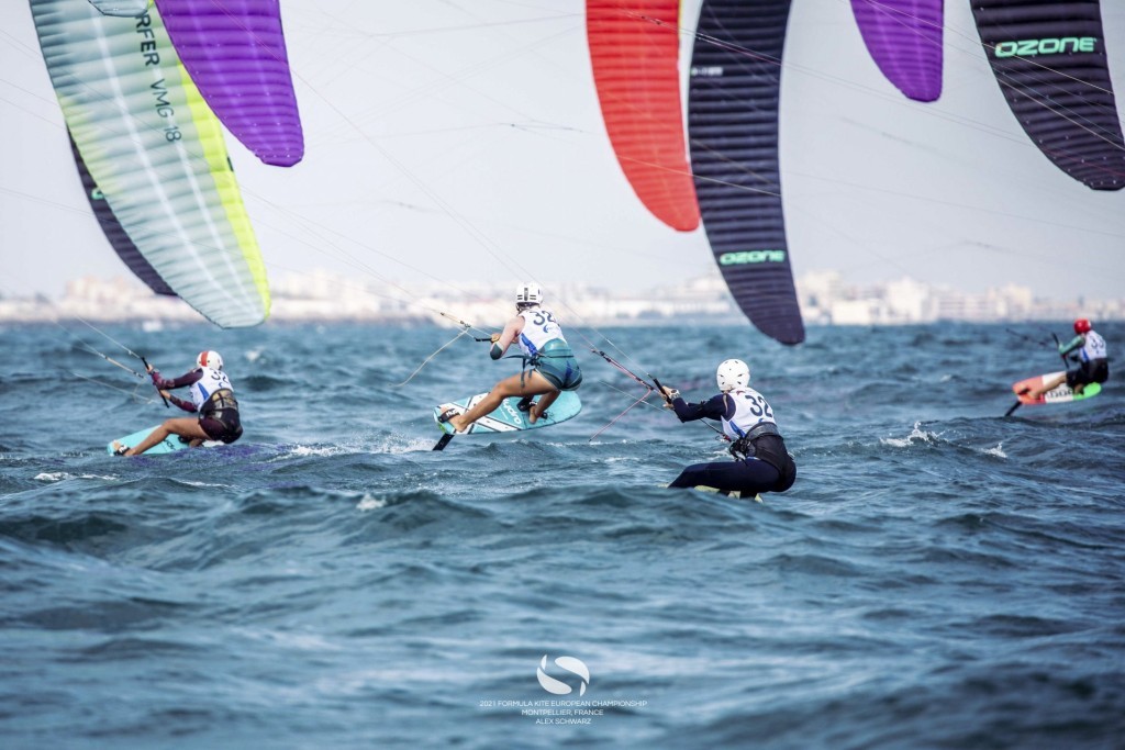 Reigning Formula Kite European champion, France’s Axel Mazella, began the defence of his title with a peerless, perfect record on the opening day of racing of the 2021 competition in fresh breezes off Montpellier’s Villeneuve Les-Maguelone beach, southern France.