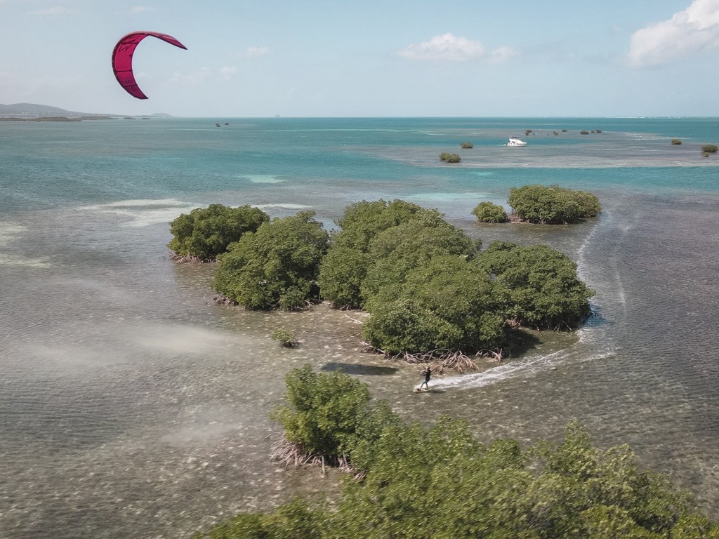 When it comes to kiteboarding, however, it’s different. Although we both have trade winds, in Martinique, the wind arrives in the morning and end of the afternoon. In Guadeloupe, it’s the opposite, more like a thermal wind that starts later in the morning and drops off during the afternoon. The spots are also different there, with more chop and less accessible. It’s better for surf kiting or just to travel.