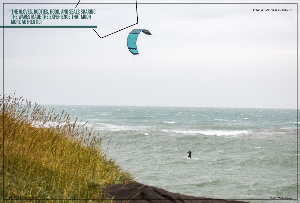 Surprisingly, we encountered wind on the very first day! It was quite strong with a lot of current, and I was extremely overpowered on my 8m RPX in the big ocean waves, but it was so fun to be back on a twin tip for the first time in Iceland. The gloves, booties, hood, and seals sharing the waves made the experience that much more authentic!