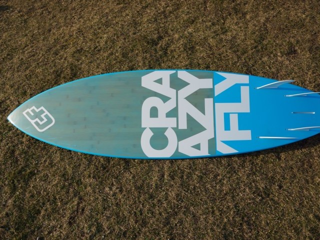 The CrazyFly ATV (All Terrain Vehicle) is a new surfboard in their 2015 line up. Hailed as a do-it-all wave board for most conditions, it has been designed and developed in waves the world over. An impressively attractive bamboo veneer coats the strong EPS Core. There is the option to have straps on the board, which can be mounted on top of the super grippy EVA footpads. A thicker fibreglass reinforcement has been added under where you stand, to reduce any pressure dings from powered riding. The ATV has the option of either a Quad or Thruster set up, and comes equipped with a full set of Futures Fins for whichever option you choose. The Thruster set up has a looser feel on the water, but when the wind kicks in the Quad fin setup will give insane grip in the gnarliest of waves. The ATV has a baby-swallow tail allowing for quick snappy turns.