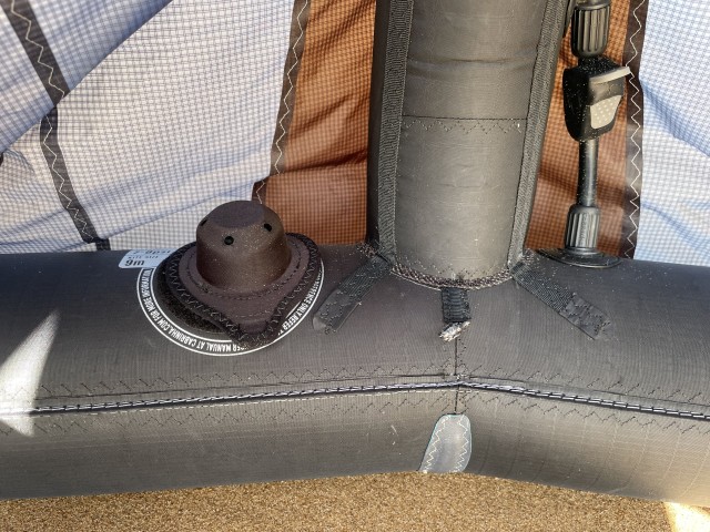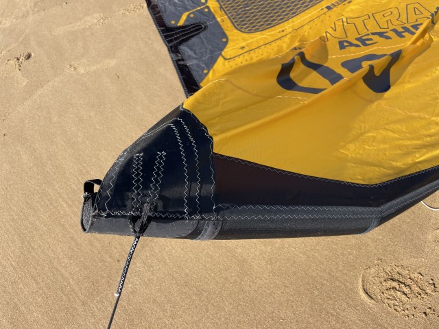 Everything about the Aether has been stripped back, and the build is super light with a combination of materials offering stiffness and durability while saving on weight. The leading edge and trailing edge use Cabrinha's High Tenacity Dacron; this material uses ultra-high tenacity yarns with an increased thread count to create a stiffer material that won't warp or warp elongate when inflated to higher pressures. This makes it incredibly stiff and stable in the air. The struts use HTD Lite, which takes the advantages of the High Tenacity Dacron and reduces the weight considerably while also offering a little more flex response to improve handling. Finally, the canopy is the proprietary Nano Ripstop material Cabrinha have been using for a few years. This material uses a much tighter weave than other materials on the market, improving stiffness and durability.