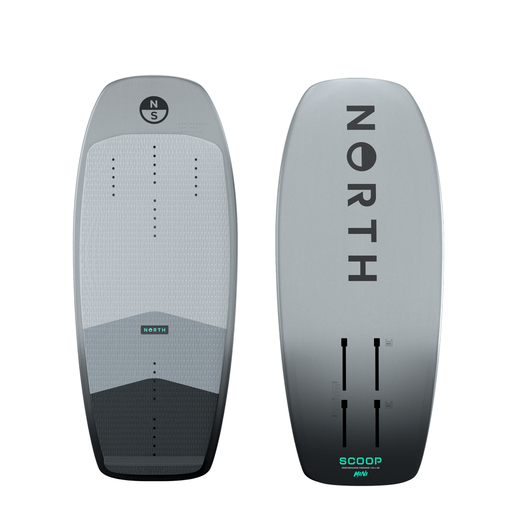 The design of the Scoop Mini emphasizes simplicity and functionality. Its pared-back shape, combined with a maximum-traction non-abrasive deckpad, provides riders with a direct feel and optimal control. The board also features the innovative DropBox track system, which offers structural integration for reliable support. This system enables precise tuning of the foil setup according to the rider's weight and comfort and is compatible with any Foil setup with a 165x90 bolt pattern.