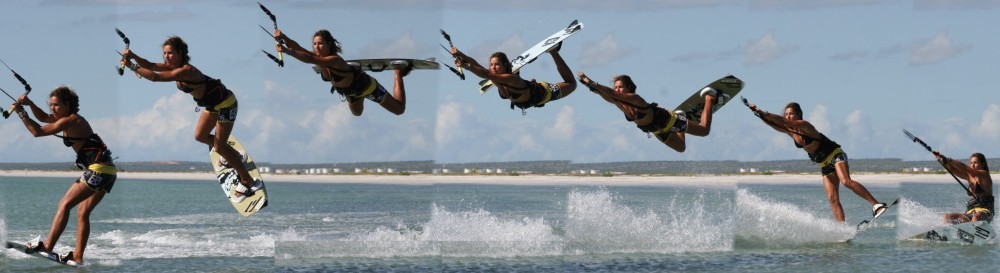 - Pic 3. Now that Karine has left the water the kite pulls her forward towards it. This action stretches Karine’s body out.