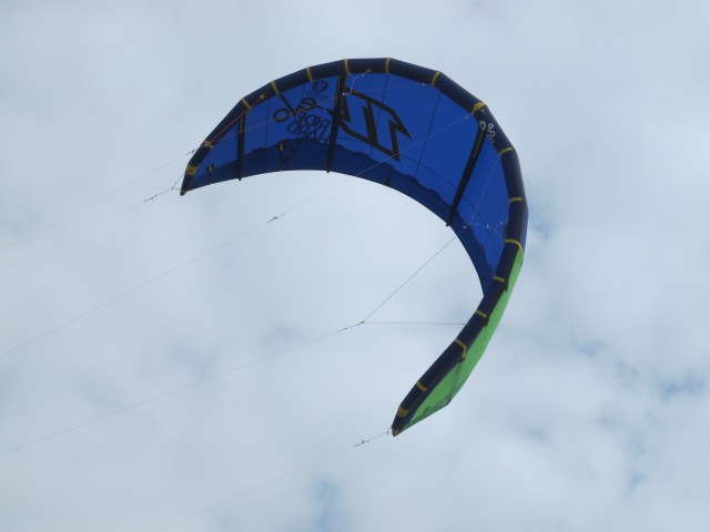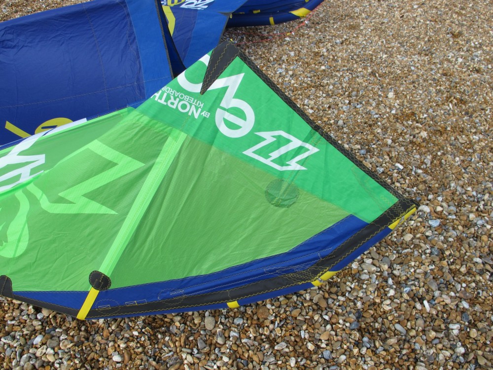 The Evo has been ion the North line up for a while now, originally their first “delta” it has changed a lot over the years, but remains a delta-orientated design. Billed as being the most versatile kite in the North range it is used by Jaime Herraz as his weapon of choice, while freestyle ripper Tom Herbet uses it for his aggressive style of riding. It can be flow with either a 4 line bar or the 5th Element safety system. The kite ships with the 5th line tucked neatly into a pocket so you can make a decision as to whether you want to use it or not. There is a fairly simple bridle and the kite has a two point connection on the rear lines. The kite is well built as you would expect and is littered with reinforcement points on the leading edge. It is a 5 strut design, using the new 3 in 1 strut system which allows them to control the airflow over the entire canopy of the kite.