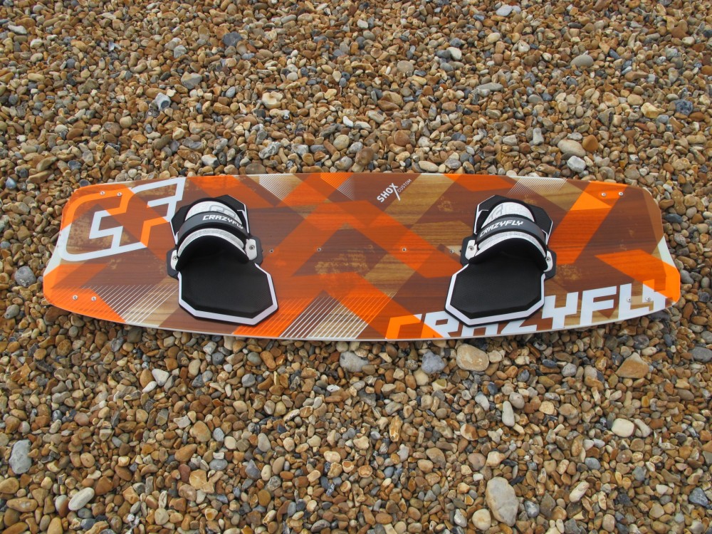 The Shox Custom is the popular freeride board in the CrazyFly line up. This year it sees a makeover and some design changes, but it is still aimed firmly at the rider looking for the ultimate freestyle weapon. This year the Shox Custom features a full wood core, ABS rails and 3D moulding. The bottom has a deep double concave that carries all the way through to the tips of the board and the flex is medium with a softer flex in the tips. 5cm CrazyFly Raptor fins adorn the underside and they are incredibly thin. The pads are shaped with an aggressive step to keep your toes in place and the straps are easy to adjust.