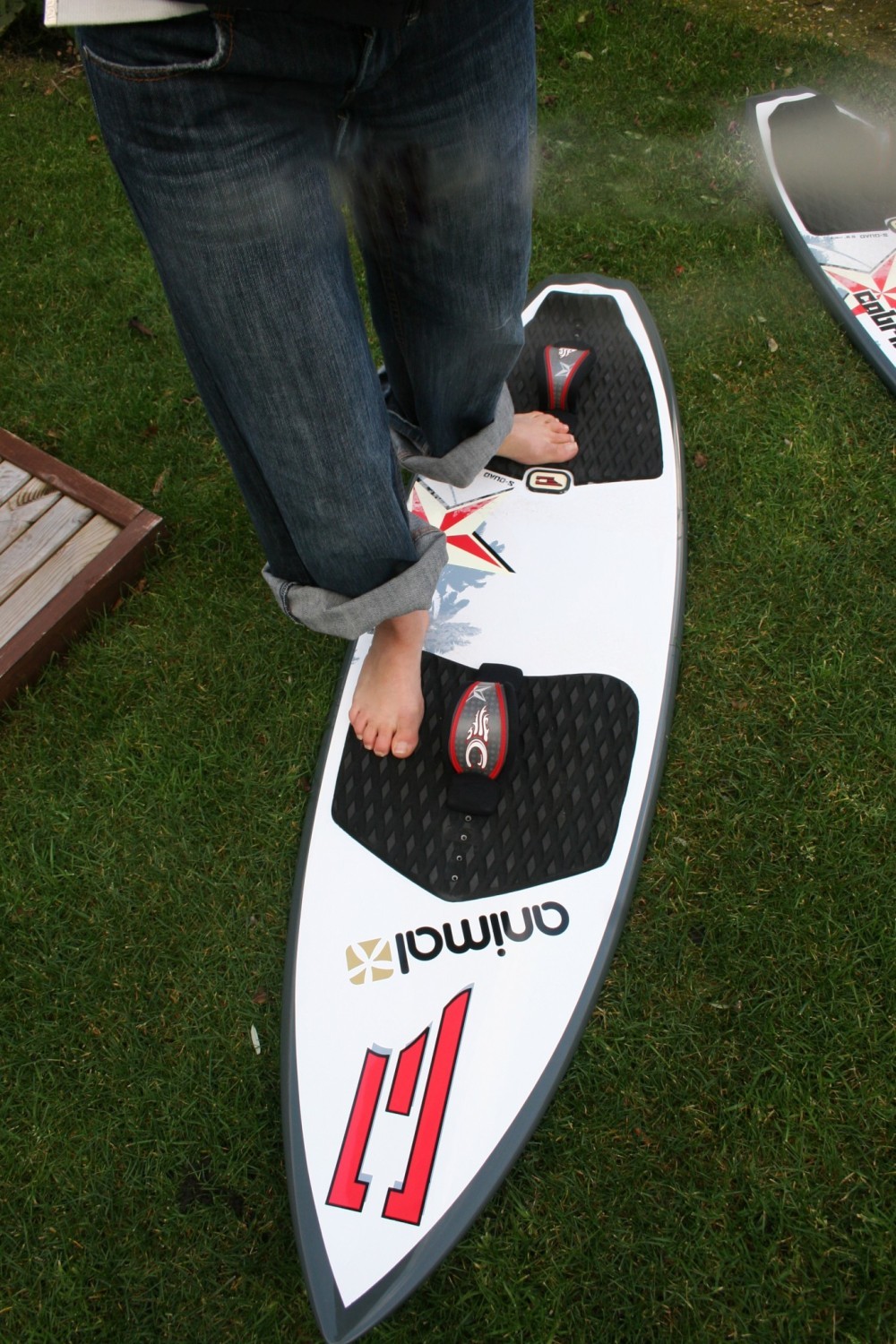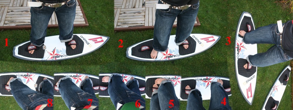The easiest place to practice will be on land with no kite, chop or waves to worry about. Once it feels natural and you don’t have to think too much, it’ll be time to move onto the water. The real key is to trust your movements and therefore have the confidence not to look down. Looking down will pull your body out of position and increase the likelihood of it all going Pete Tong. In Video 1 you can see Karine’s feet move in real time.