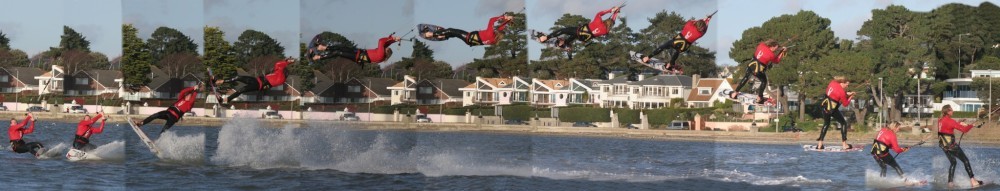 The other secret weapon to an applause worthy F16 is an early take off. If you wait until the kite yanks you off the water, it will already have turned too far, and therefore pull you around too early, making landing balanced tricky or leading to a bad case of over-rotation. The best thing to do is to physically jump up into your backloop off your edge just before you think the kite will pull. By doing this you aim to complete half a rotation. If you can stare upwind whilst being at the apex of your jump the kite will take over and bring you round for a nice smooth landing. This may however take a bit of practice to get the timing.